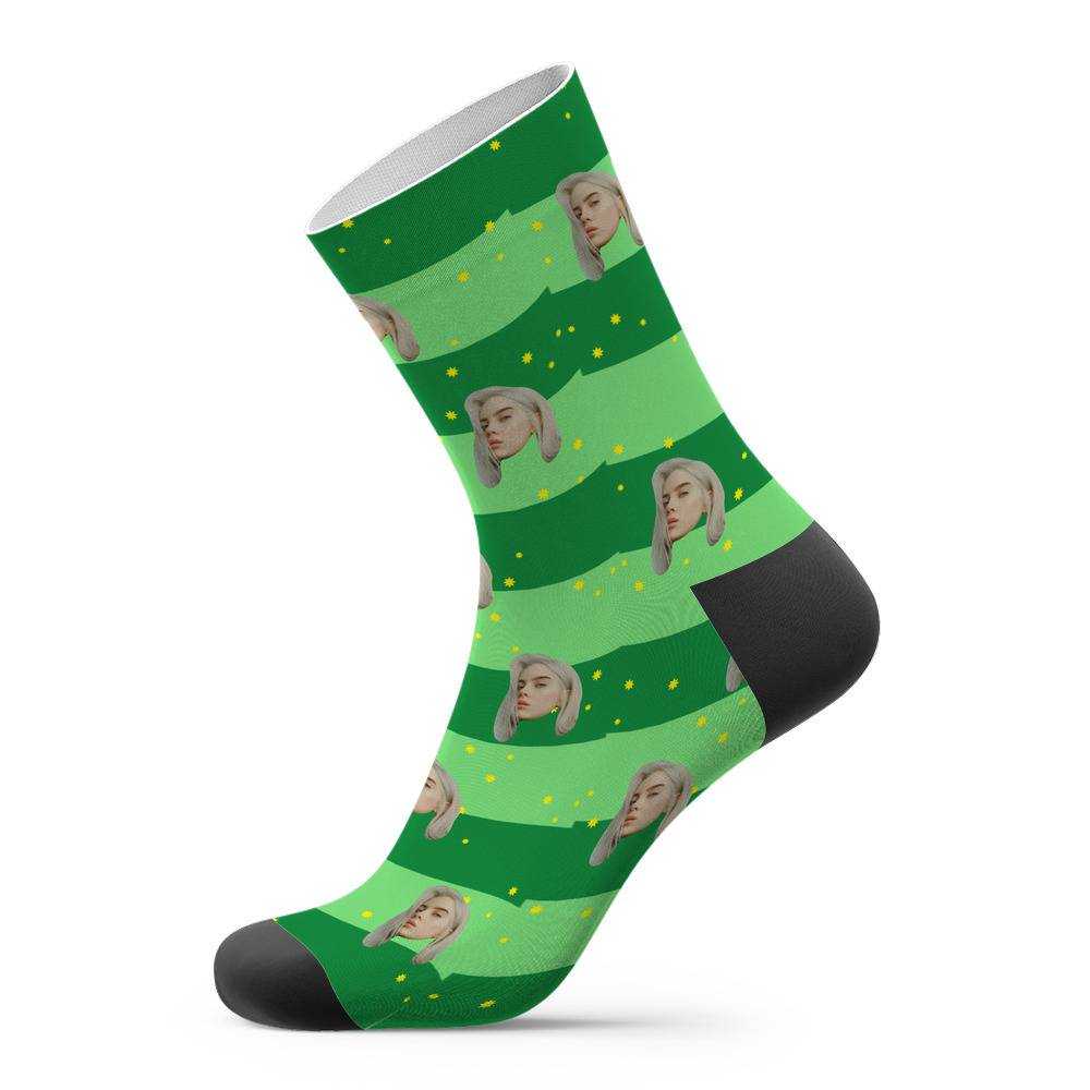 Billie Eilish Socks Custom Photo Socks Striped Printed Socks Green - Put Your Face On Custom Face Socks. Create the Perfect Gift!