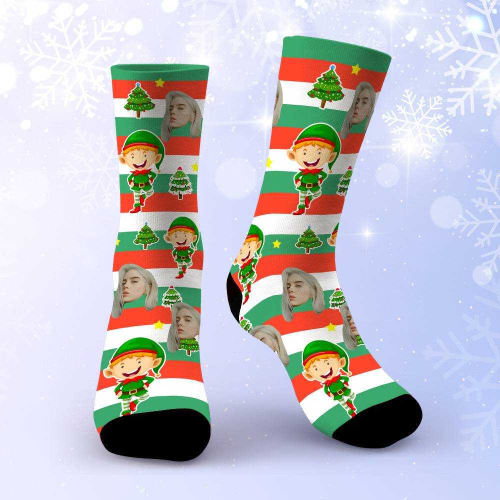 Billie Eilish Socks Custom Photo Socks Christmas Socks Santa Elf Stripe Socks