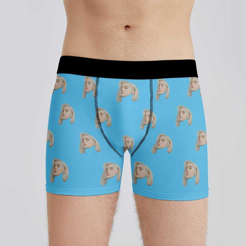 Billie Eilish Boxers Custom Photo Boxers Men's Underwear Plain Blue Boxers - Put the face on the Boxers, create the perfect gift for boyfriend!