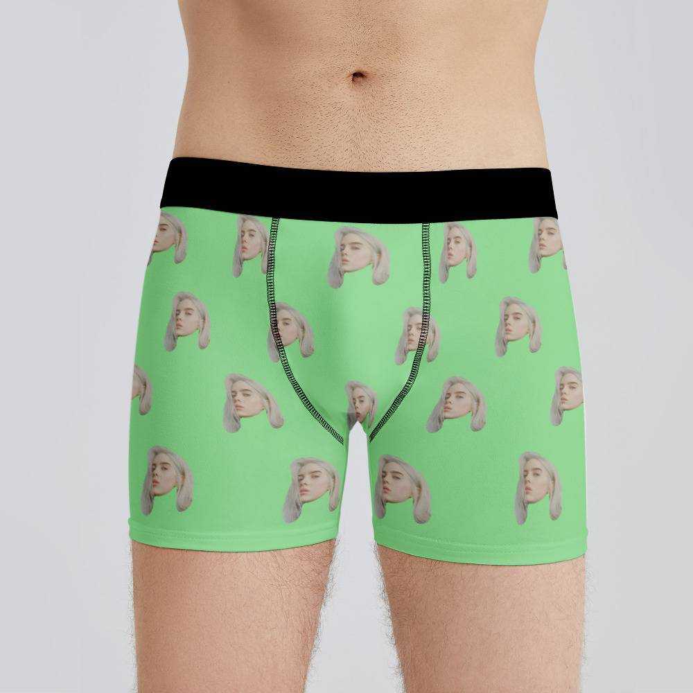 Billie Eilish Boxers Custom Photo Boxers Men's Underwear Plain Green Boxers - Put the face on the Boxers, create the perfect gift for boyfriend!