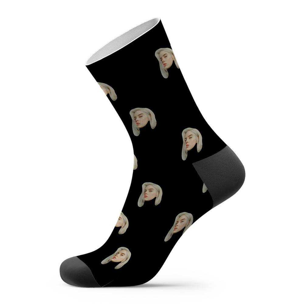 Billie Eilish Socks Custom Photo Socks Plain Black Socks - Put Your Face On Custom Face Socks. Create the Perfect Gift!